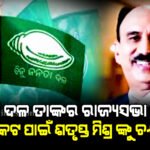 ବିଜେଡି ଦଳ ତାଙ୍କର ରାଜ୍ୟସଭା ର ପ୍ରଥମ ଟିକଟ ପାଇଁ ଶତୃପ୍ତ ମିଶ୍ର ଙ୍କୁ ଚୟନ କରିଛି ଏବଂ ଚତୁର୍ଥ ସିଟ ପାଇଁ କଂଗ୍ରେସ ଉଠାଇଥିବା ଦନ୍ତେଶ୍ଵର…