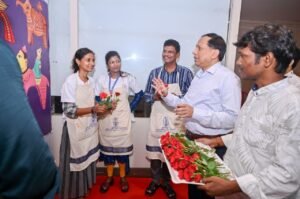 “ବିକଶିତ ଭାରତ” ଚିତ୍ରକଳା କର୍ମଶାଳା କାର୍ଯ୍ୟକ୍ରମରେ ଓଡ଼ିଆ ଭାଷା, ସାହିତ୍ୟ ଓ ସଂସ୍କୃତି ବିଭାଗର ସଚିବ ଡ଼. ବିଜୟ କେତନ ଉପାଧ୍ୟାୟ ମୁଖ୍ୟ ଅତିଥି ଭାବେ ଯୋଗଦେଇଥିଲେ। ବିକଶିତ ଭାରତ ଗଠନ ନିମନ୍ତେ ଯୁବପିଢ଼ି ନିଜର ସକ୍ରିୟ ଯୋଗଦାନ ଦେବା ସହିତ ନିଜର ସ୍ବପ୍ନର ଭାରତକୁ ଚିତ୍ରକଳା ମାଧ୍ୟମରେ ଗଢ଼ି ତୋଳିବା ପାଇଁ ସଚିବ ଶ୍ରୀ ଉପାଧ୍ୟାୟ ସମସ୍ତ ଚିତ୍ରଶିଳ୍ପୀମାନଙ୍କୁ ଉତ୍ସାହିତ କରିଥିଲେ। ପ୍ରକାଶଯୋଗ୍ୟ ଯେ, ଏହି ଚିତ୍ରକଳା କର୍ମଶାଳାରେ ଚିତ୍ରଶିଳ୍ପୀମାନଙ୍କ ଦ୍ୱାରା ଚିତ୍ରିତ ହୋଇଥିବା ଚିତ୍ରକଳାଗୁଡ଼ିକୁ ଆସନ୍ତା ଅକ୍ଟୋବର ୯ ତାରିଖ ପର୍ଯ୍ୟନ୍ତ କଳିଙ୍ଗ ଆର୍ଟ ଗ୍ୟାଲେରୀ ଠାରେ ଆୟୋଜିତ ହେଉଥିବା ପ୍ରଦର୍ଶନୀରେ ପ୍ରଦର୍ଶିତ କରାଯାଉଛି।